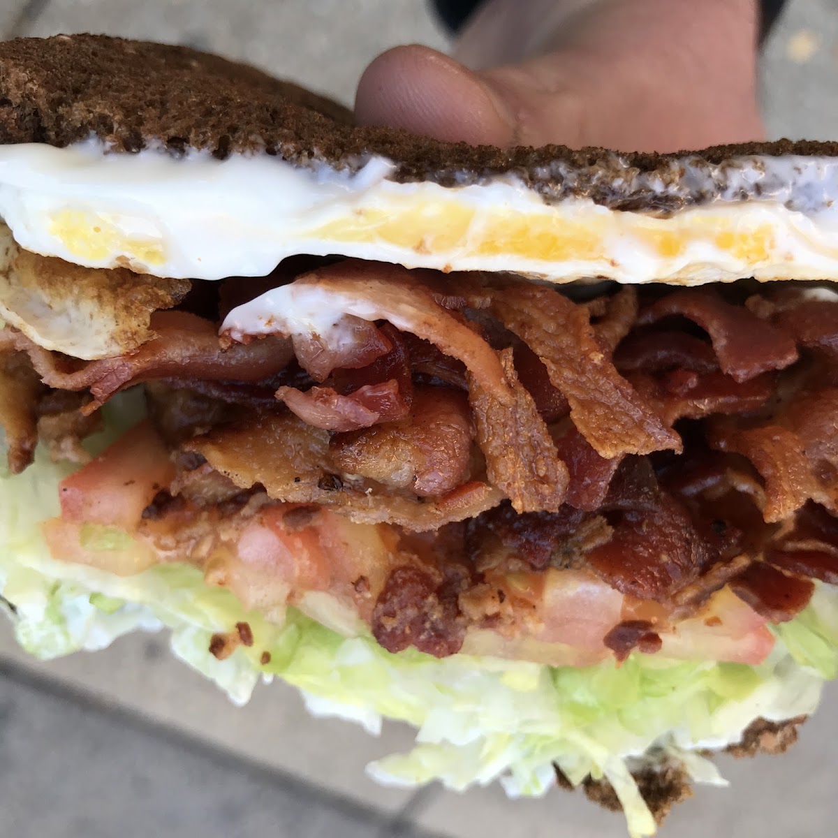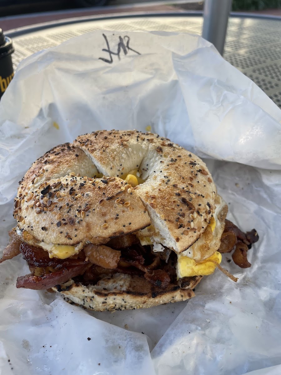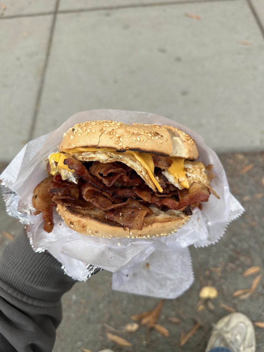 This place is a time machine. Prices look like they were set in the 90's and frozen since then. For $7, you can get a massive breakfast sandwich that, if you're a normal human being, will fill you up for the entire day and if you're a local college student, at least through your afternoon classes. I splurged and got a BLT with egg on an everything bagel with cheese for a whopping $9. And the bacon quotient is next level, they just have some inside hookup on a massive bacon pipeline because each sandwich literally has 4-5x the amount of bacon you'd expect and rightfully deserve. Line is long but moves briskly, you'll likely be in and out in about an efficient 10 minutes.